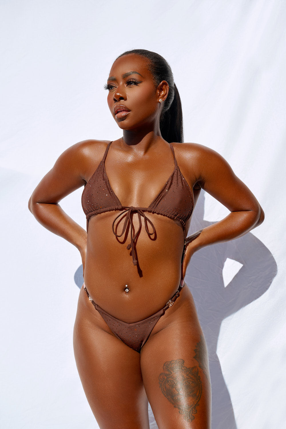 The classic Slingshot has gone next level. Introducing The Infinity Slinga: INFINITE ways to wear and dripping with sparkling iridescent rhinestones, you ain't seen nothin' like this.