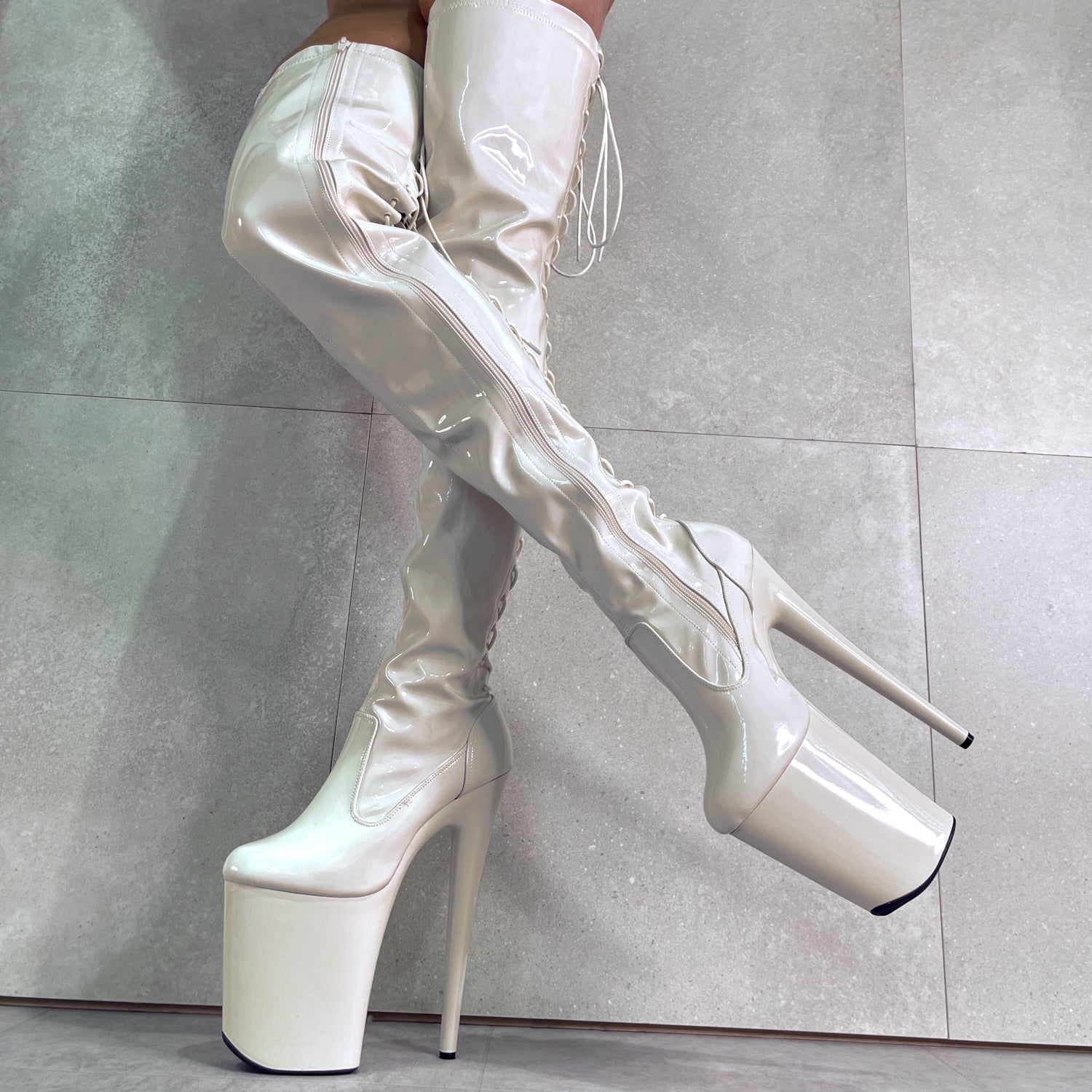 These boots were my 9th pair of hellas but they were the most disappointing. The "slim" edition is no where near slim enough and is baggy around ankle, calf, knee and thigh levels, even with the lace tightened at maximum (there should therefore be less fabric overall and more reliance on the back lace). The material is low quality, even after a single contact it frails off immediately, the leather is also such that it is way too sticky for anything flow or floor-based, the shoes stick to the floor, the pole and themselves too much. Overall would not recommend these boots,